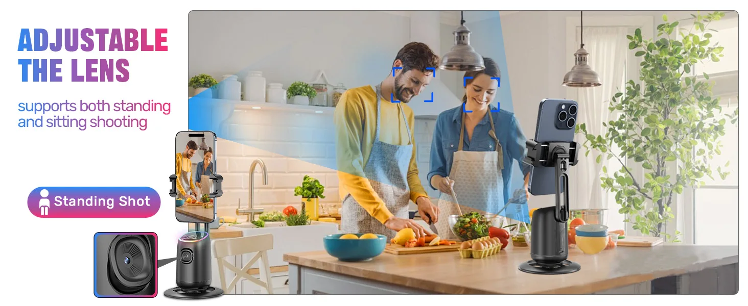 Features automatic 360° panoramic rotation and easily switches between standing and seated shooting modes to meet diverse photography needs