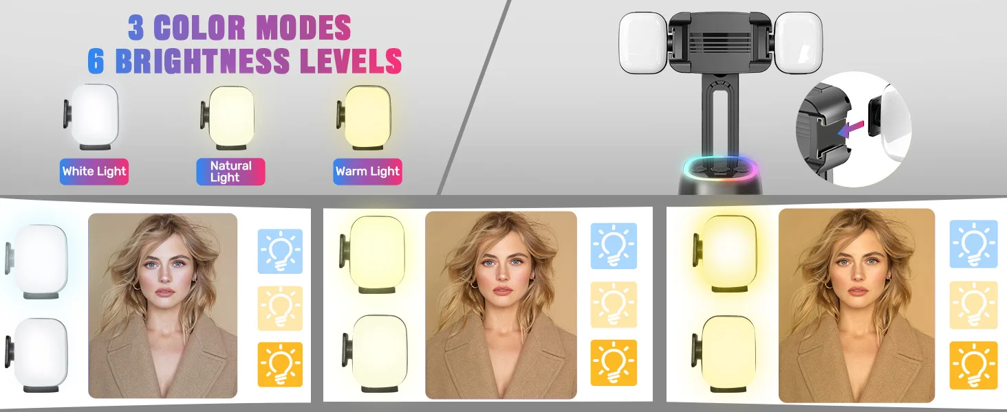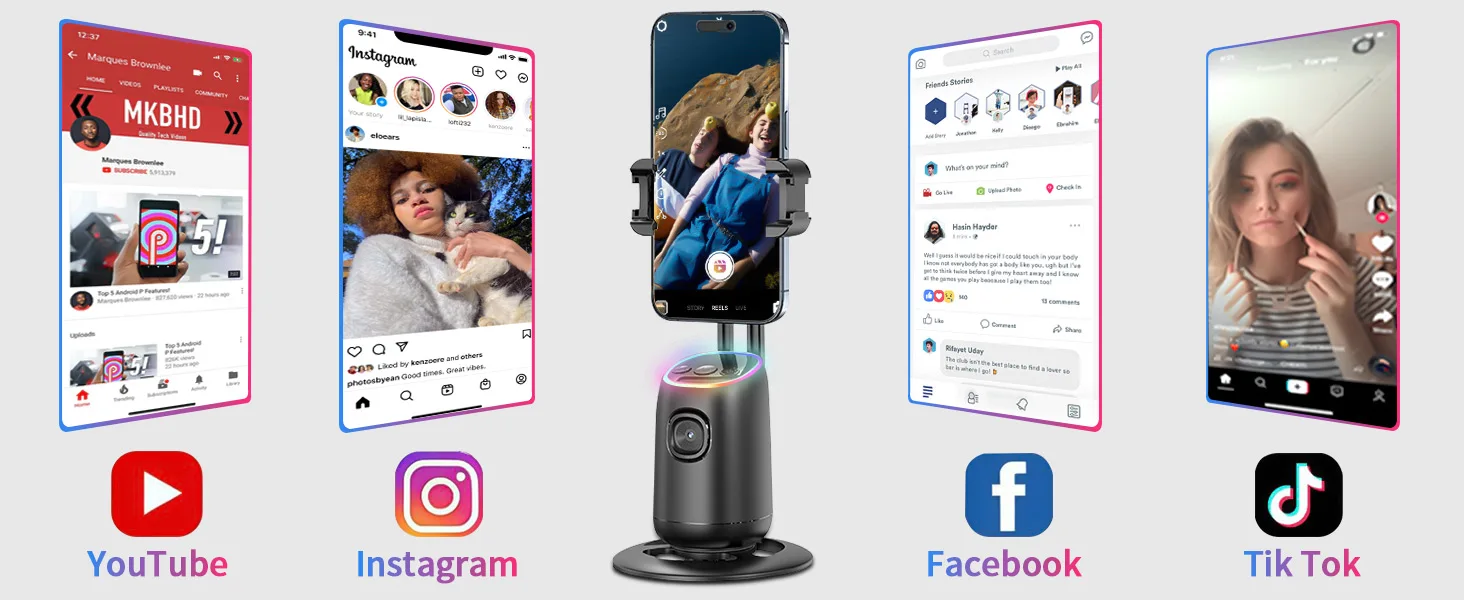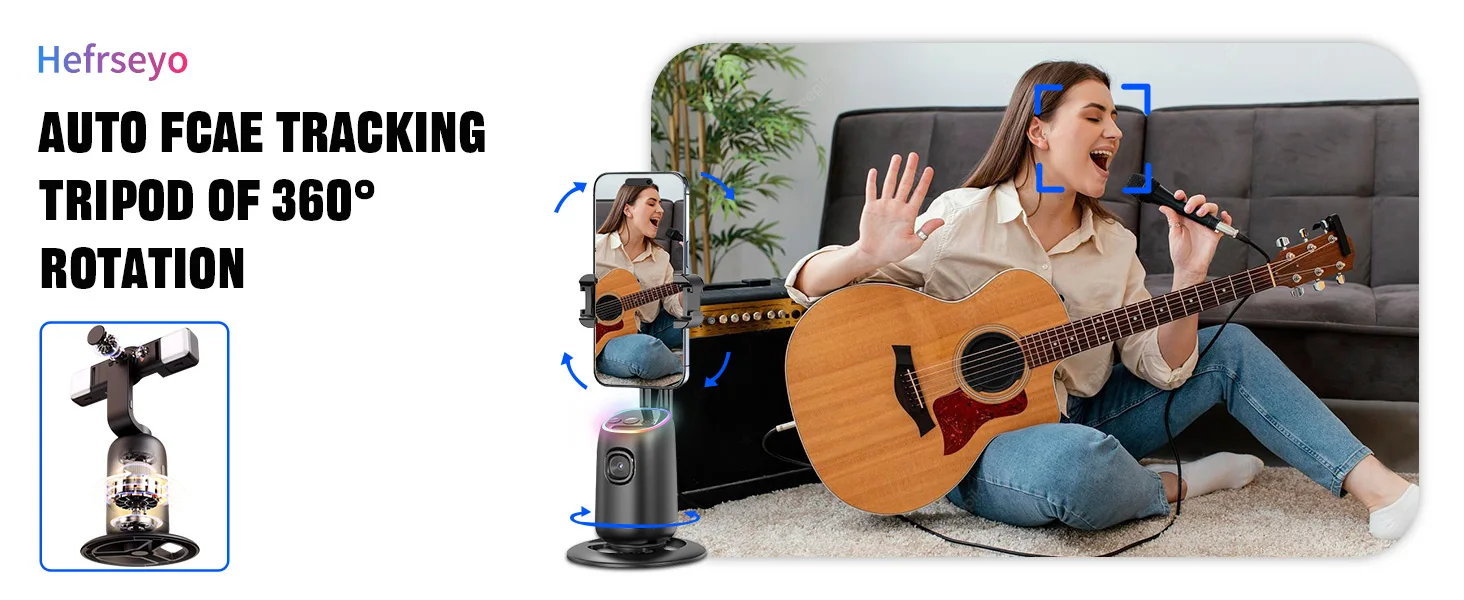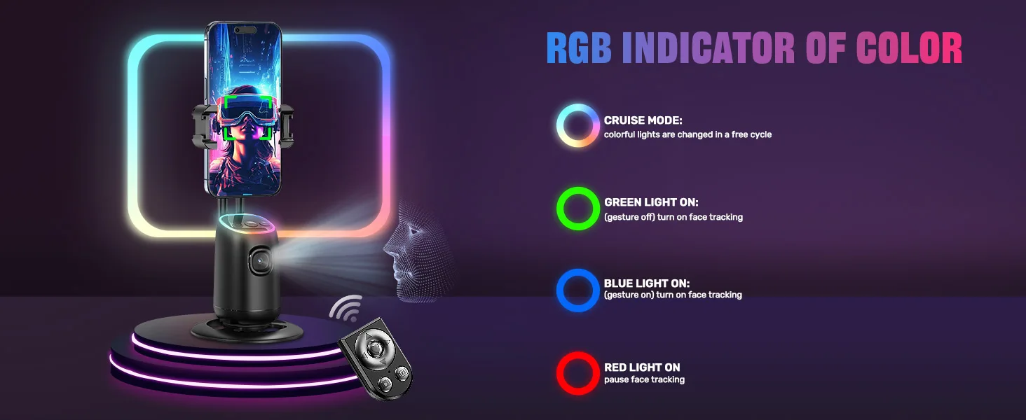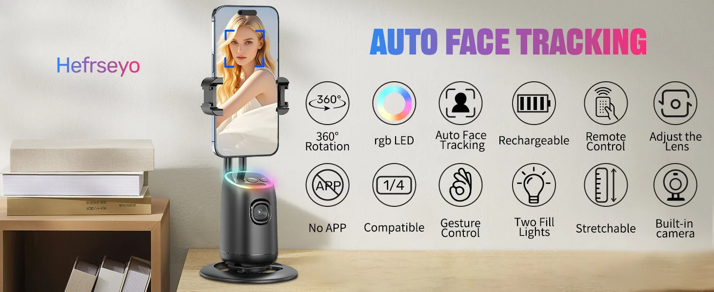Supports 270° vertical and 360° horizontal rotation, with a 1/4 interface compatible with smartphones and cameras. Ideal for selfies, panoramic photography, or professional shoots. Warm tips: Avoid rapid movements for optimal face tracking, and manually adjust the camera for vertical views.